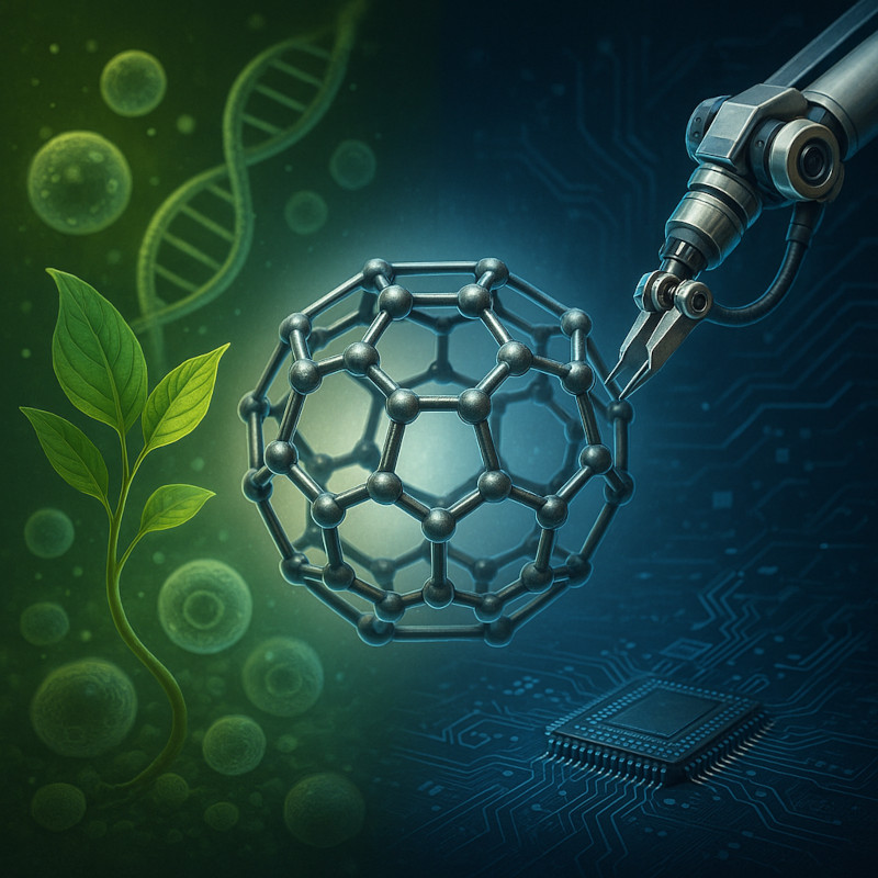 Fulereny to unikalne struktury węglowe o kształcie kulistym, cylindrycznym lub elipsoidalnym, składające się z pierścieni pięcio- i sześcioczłonowych. W świecie nanomateriałów fulereny – klatkowe cząsteczki węgla, odkryte w 1985 r., budzą zachwyt jak kosmiczne diamenty ze względu na ich niezwykłe właściwości fizyczne, chemiczne i biologiczne. Gdy nauka próbuje je „uczynić biologicznymi”, rodzi się pytanie: Czy fulereny z biomasy mogą konkurować z precyzyjnie wytwarzanymi syntetykami? Biologiczne fulereny to termin oznaczający struktury powstałe w zaawansowanym procesie biotechnologicznym biomasy roślinnej, stanowiące nową klasę naturalnych cząsteczek przypominających fulereny o wysokim potencjale antyoksydacyjnym.