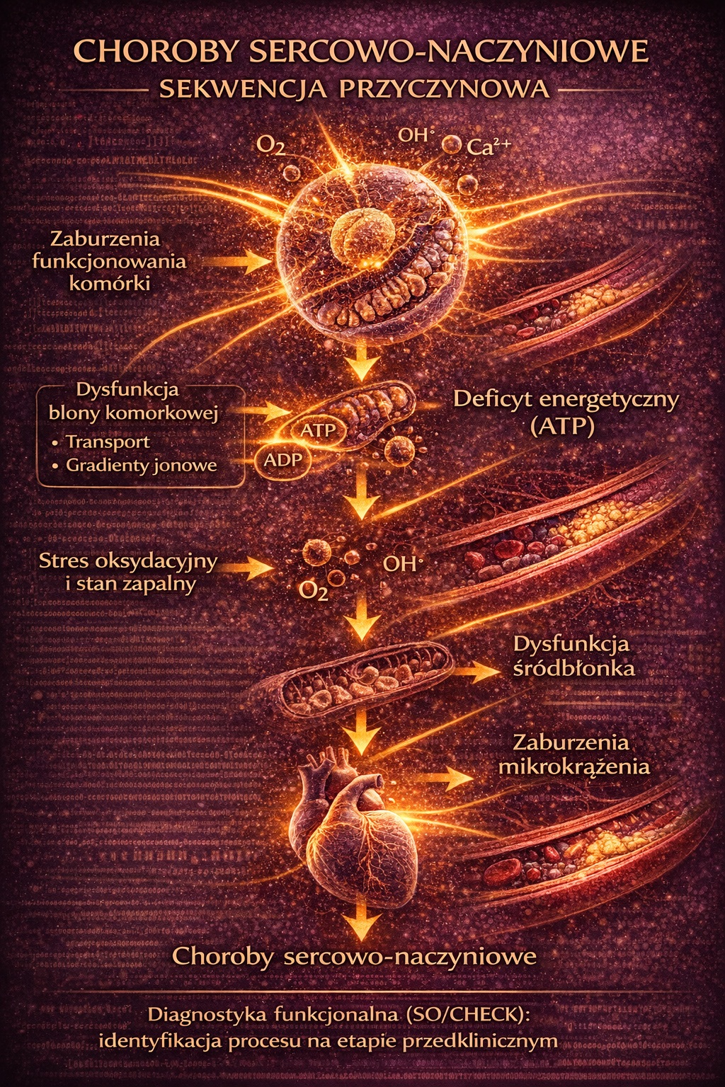 Choroby sercowo-naczyniowe nie zaczynają się w naczyniu ani w sercu. Są one końcowym etapem wieloletnich zaburzeń funkcjonowania komórki, jej błony, energetyki oraz środowiska tkankowego. Zrozumienie tego procesu pozwala przesunąć punkt ciężkości z leczenia powikłań na wczesną prewencję i monitorowanie funkcji układu krążenia.