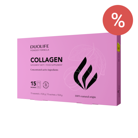 DUOLIFE Collagen Powder jest suplementem diety o kompleksowym składzie w formie saszetek o smaku pomarańczowo-żurawinowym, zawierającym wyłącznie składniki pochodzenia naturalnego. Preparat to połączenie 6 najwyższej jakości składników aktywnych, które tworzą unikalną kompozycję zgodną z zasadami synergizmu. Zawiera bardzo wysoką porcję kolagenu. Dodatkowo receptura została wzbogacona o ekstrakt z małży nowozelandzkiej – omułka zielonowargowego, ekstrakt z morszczynu pęcherzykowatego, naturalne witaminy E i D3 oraz zastrzeżoną formułę pozyskaną z inaktywowanych komórek drożdży Saccharomyces cerevisiae standaryzowaną na zawartość selenu.