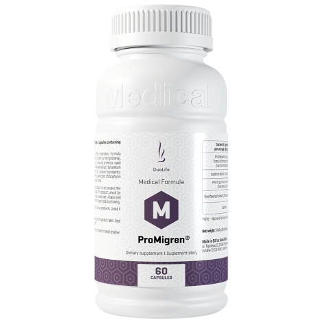 ProMigren® to suplement diety w formie kapsułek, skomponowany ze starannie wyselekcjonowanych składników pochodzenia naturalnego, które m.in. przyczyniają się do utrzymania optymalnej aktywności umysłowej i poznawczeja, pomagają w prawidłowym funkcjonowaniu układu nerwowegob oraz jako przeciwutleniacze, wspomagają ochronę komórek przed niekorzystnym działaniem wolnych rodnikówc.