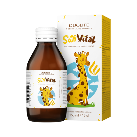 SunVital® jest suplementem diety w formie płynnej, którego składniki aktywne, m.in. przyczyniają się do prawidłowego funkcjonowania układu odpornościowego a, wspomagają naturalne mechanizmy obronne, zwłaszcza na poziomie górnych dróg oddechowych b oraz przyczyniają się do ochrony organizmu przed szkodliwymi czynnikami zewnętrznymi c.